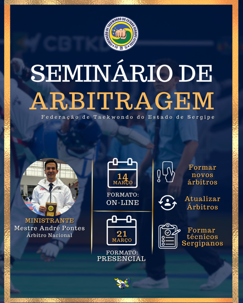 VEM AÍ O SEMINÁRIO DE ARBITRAGEM DA FEDERAÇÃO DE TAEKWONDO DO ESTADO DE SERGIPE!